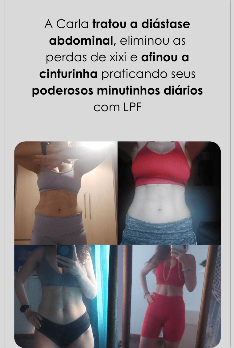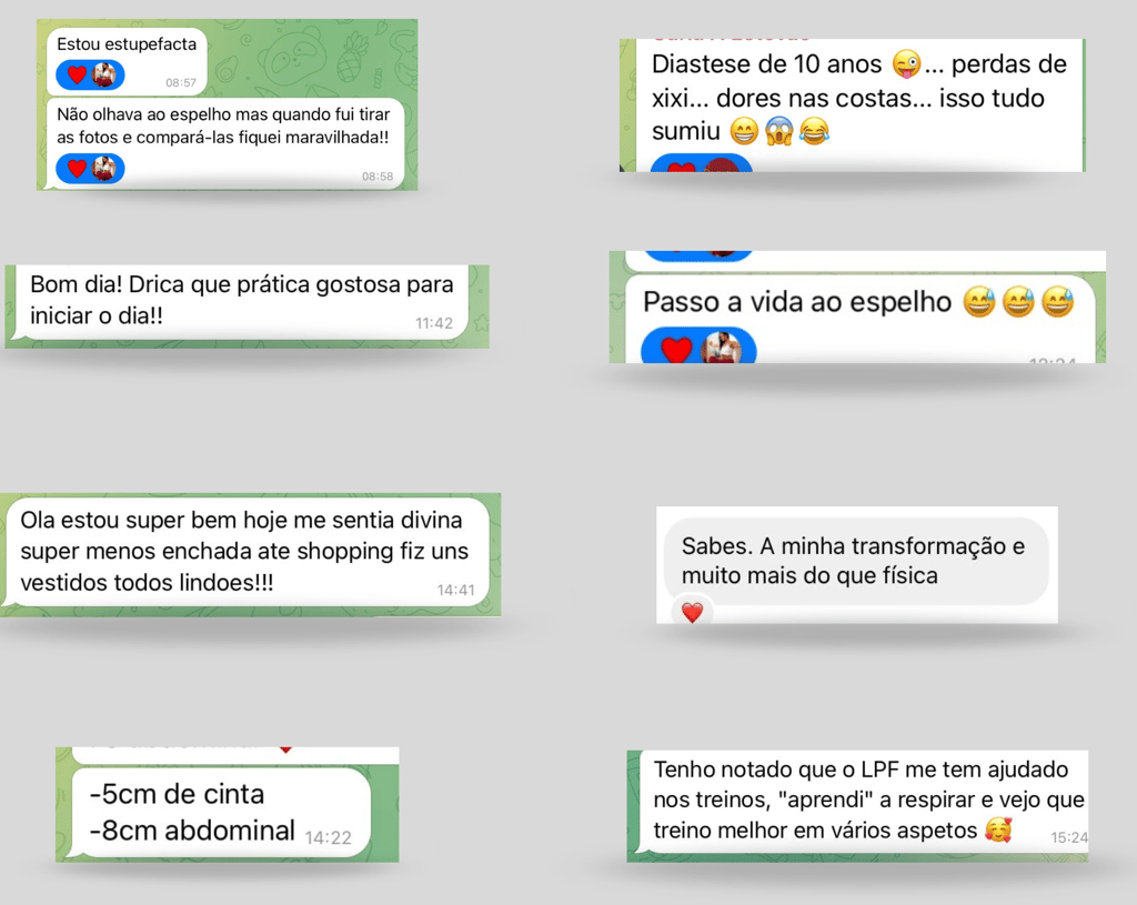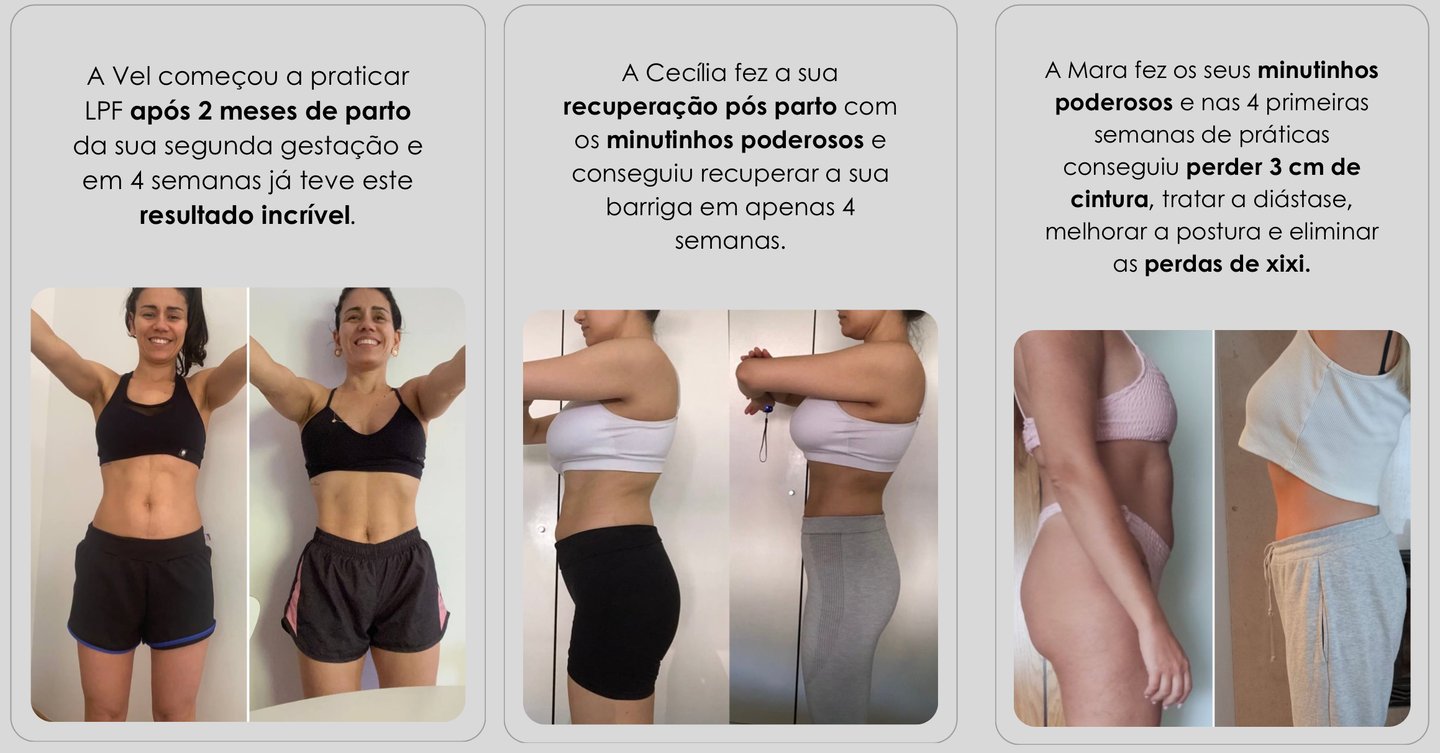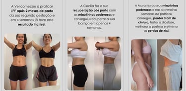 Nos últimos anos, tenho acompanhado centenas de mulheres em processos profundos de transformação corporal e emocional: redução de diástase, cintura mais fina, melhora da postura, melhora de dores, aumento da energia, regulação do sitema nervoso , fortalecimento do core e reconexão com o próprio corpo.