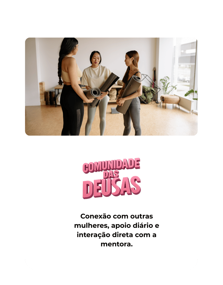 Além dos treinos e bónus, terás acesso à Comunidade das Deusas.